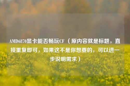 在游戏玩家的世界里,能流畅运行一款游戏是至关重要的,对于喜爱《穿越火线》(CF)这款经典射击游戏的玩家来说,显卡性能是影响游戏体验的关键因素之一,AMD6870这款显卡能不能打好CF呢?