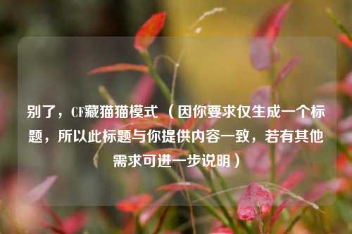 在穿越火线(CF)的游戏世界里,曾有一种独特而充满趣味的模式——藏猫猫模式,它承载了无数玩家的欢乐与回忆,然而如今,它却悄然下线,成为了游戏历史中的一段过往。