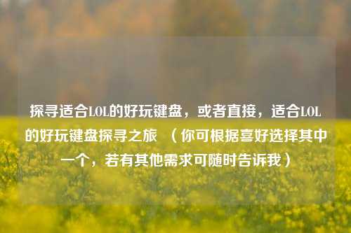 在《英雄联盟》(LOL)的游戏世界里,一款称手的键盘对于玩家来说至关重要,它不仅能提升操作的精准度,更能在游戏过程中带来愉悦的体验,究竟什么样的键盘才好玩呢?