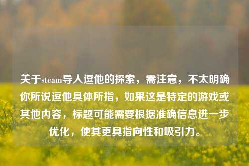 在游戏领域,常常会出现各种奇特的操作和探索。“steam导入逗他”这一表述乍一看似乎有些令人摸不着头脑,但其中却蕴含着许多值得探究的内容。