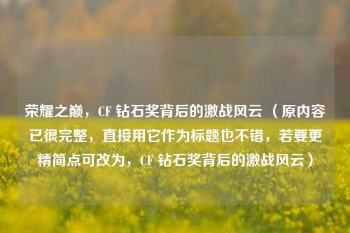 在CF(Cross Fire)这款风靡全球的第一人称射击游戏的世界里,钻石奖无疑是众多玩家们梦寐以求且为之热血拼搏的至高荣誉象征,它代表着在激烈枪林弹雨中脱颖而出的卓越实力,凝聚着无数日夜的苦练与智慧。