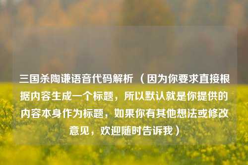在三国杀的游戏世界里,每个武将都有着独特的魅力,而他们的语音更是为角色增色不少,陶谦作为其中一位武将,其语音代码蕴含着丰富的信息和情感。