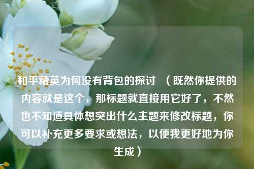 在和平精英这款热门游戏中,玩家们常常沉浸于激烈的战斗与紧张的生存角逐中,不知是否有人曾思考过一个有趣的问题:为什么和平精英没有背包呢?