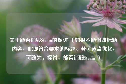 在游戏行业蓬勃发展的当下,Steam 作为全球最大的数字游戏发行平台之一,在玩家群体中拥有极高的知名度和广泛的影响力。“能否销毁 Steam”这个问题却引发了众多玩家和业内人士的思考与讨论。