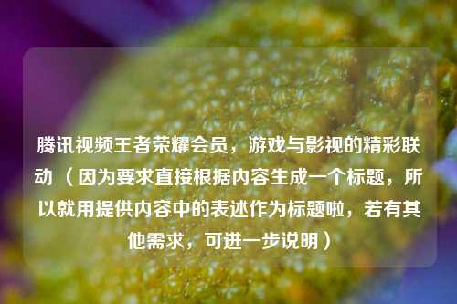 在当今数字化娱乐时代,各种会员服务层出不穷,而腾讯视频王者荣耀会员的推出,无疑为广大用户带来了一场独特的视听与游戏盛宴。