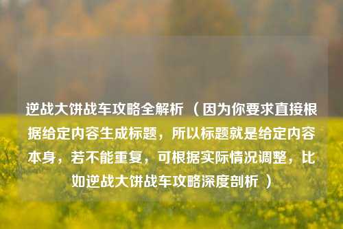 通过这份逆战大饼战车攻略图,玩家们可以更加清晰地了解战斗流程和要点,在实际游戏中,不断磨合团队配合,熟练运用攻略技巧,相信大家都能在大饼战车这个战场上取得优异的成绩,享受到逆战带来的热血战斗体验。