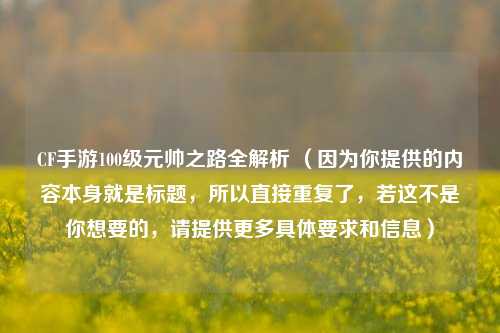 在CF手游的世界里,成为100级元帅是众多玩家梦寐以求的荣耀象征,这不仅代表着玩家在游戏中的高超技艺和丰富经验,更是对其长期投入与坚持的肯定,下面就为大家详细讲解CF手游100级元帅的达成教学。