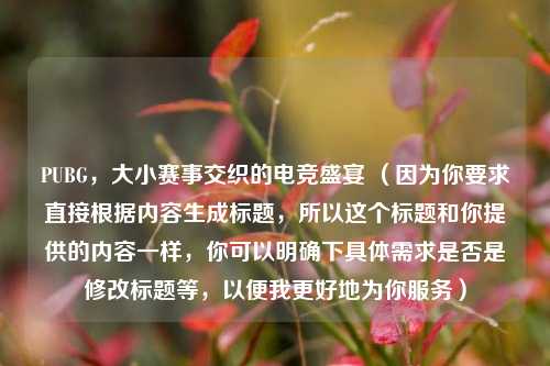 在电竞领域,PUBG(PlayerUnknown's Battlegrounds)以其紧张刺激的玩法吸引了无数玩家的目光,而围绕它展开的大小赛事更是构成了一幅精彩纷呈的电竞画卷。