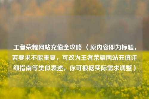在王者荣耀的世界里,想要畅享更多精彩内容,充值是常见的需求,大家一定要注意,正规的王者荣耀充值渠道并非通过一些非官方指定的网站。