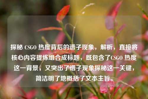 在 CSGO 的世界里,曾经一段时间,“谱子”现象如日中天,引发了广泛的讨论与争议。