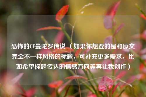 在那个充满神秘与诡异的CF世界里,一直流传着一个令人毛骨悚然的传说——cf曼陀罗吃人。