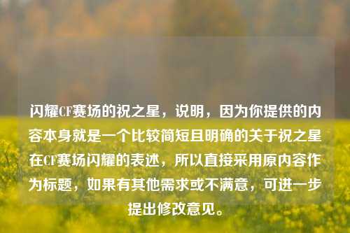 在CF(穿越火线)的浩瀚赛场上,有一颗璀璨的明星正冉冉升起,他就是祝之星。