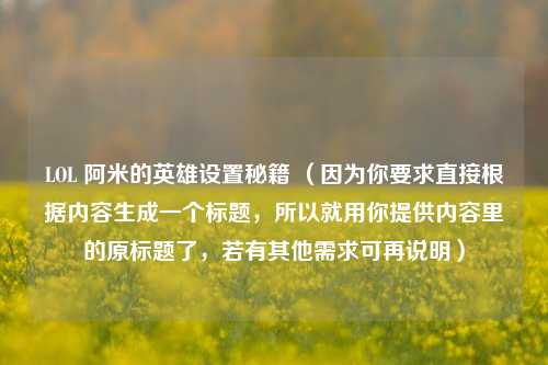 请你补充一下关于“LOL阿米的英雄设置秘籍”的具体内容呀,比如阿米对哪些英雄进行了怎样的设置,有什么独特的技巧或思路等,这样我才能按照要求准确生成摘要。