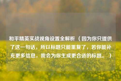 本文聚焦于和平精英实战视角设置展开全解析,详细探讨了在和平精英游戏实战中,不同视角设置对玩家游戏体验和操作的影响,包括之一人称视角带来的更真实射击感与精准瞄准优势,第三人称视角提供的广阔视野便于观察周围环境及敌人动向等,深入分析各种视角设置在不同场景、战术下的适用性,帮助玩家更好地根据自身游戏风格和需求,优化视角设置,从而在实战中获取更有利的战斗条件,提升游戏竞技水平,在激烈的和平精英对战中取得更好成绩。