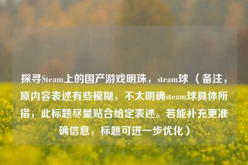在Steam这个汇聚全球海量游戏的平台上,国产游戏正逐渐崭露头角,散发着独特的魅力,那些与“球”相关的国产游戏,更是以其别样的玩法和精彩的体验,吸引着众多玩家的目光。