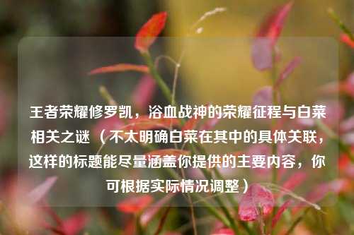 主要讲述了王者荣耀中的修罗凯开启浴血战神的荣耀征程,修罗凯在游戏里有着独特的魅力与强大实力,他在战场上奋勇厮杀,历经无数战斗,不断积累荣耀。“王者荣耀修罗凯白菜”这一表述虽有些奇特,但或许与修罗凯相关的某个特定情境、版本或衍生元素有关,其背后可能隐藏着玩家们围绕修罗凯展开的各种故事、玩法探讨等,总之围绕修罗凯在王者荣耀世界中的荣耀之路展开了一系列内容,吸引着众多玩家关注其独特的战斗历程和精彩表现。