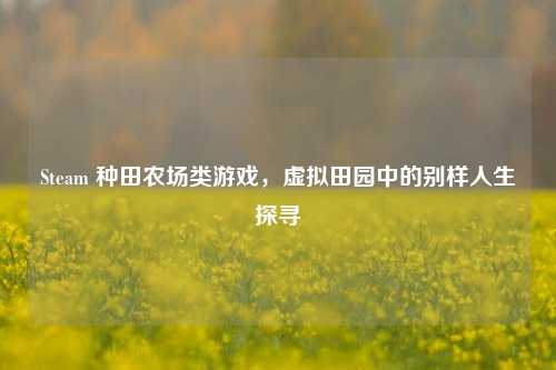 在游戏的广袤世界里,种田农场类游戏宛如一片宁静的田园,为玩家们提供了远离喧嚣、回归自然的独特体验,而Steam平台作为游戏的宝库,汇聚了众多精彩纷呈的此类佳作,让玩家们能够在虚拟的土地上耕耘收获,书写属于自己的田园篇章。