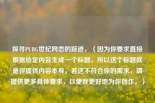 在如今的网络世界中,各种奇妙的缘分不断上演,而PUBG(绝地求生)这款热门游戏也催生了不少独特的故事,PUBG世纪网恋在哪”更是成为了许多玩家好奇探寻的问题。