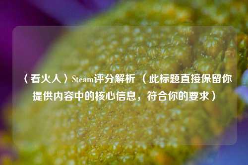 《看火人》作为一款备受瞩目的游戏,其在Steam平台上的评分备受玩家关注。