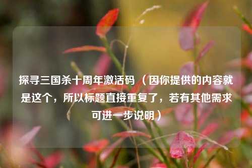 在三国杀十周年的精彩世界里,许多玩家都渴望能获取激活码开启游戏之旅,关于“三国杀十周年激活码多少”这个问题,并没有固定且公开的统一答案。