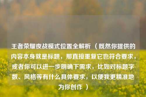 在王者荣耀这款热门游戏中,不少玩家都对夜战模式充满好奇,想要知道它究竟在哪,王者荣耀并没有单独专门的“夜战模式”。