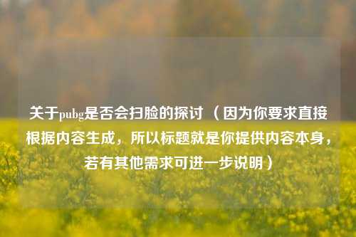 在如今的游戏领域,实名认证等安全措施越来越受到重视,对于热门游戏pubg(绝地求生)而言,玩家们也十分关注它是否会引入扫脸这一验证方式。