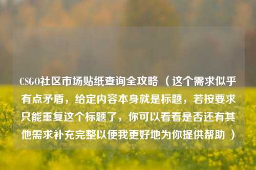 在CSGO的世界里,贴纸不仅是枪械外观的独特装饰,更是玩家个性与收藏爱好的体现,而要深入了解贴纸相关信息,社区市场查询贴纸就成为了关键环节。