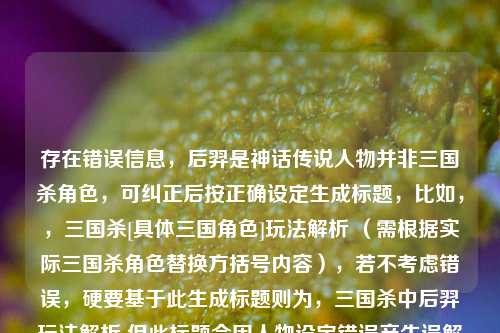 ![存在错误信息,后羿是神话传说人物并非三国杀角色,可纠正后按正确设定生成标题,比如,,三国杀[具体三国角色]玩法解析 (需根据实际三国杀角色替换方括号内容),若不考虑错误,硬要基于此生成标题则为,三国杀中后羿玩法解析 但此标题会因人物设定错误产生误解。](https://www.horseland.cn/zb_users/upload/zltheme_20251204/2e2eeb3dd43530d18b6ff976a8326d4b.jpg)